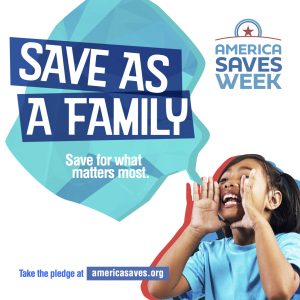 - Initiating conversations on social media around the topic of “Saving as a Family.” You can do this by sharing the done-for-you social media content provided in the America Saves Week Toolkit, or creating your own branded content. Don’t forget to use the hashtags of the day! #SaveAsAFamily, #ASW2021