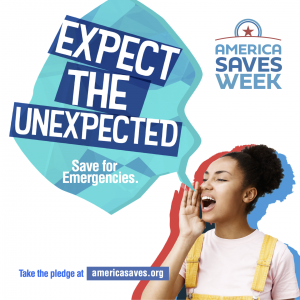 - Initiating conversations on social media around the topic of “Saving for the Unexpected” and building an emergency fund. You can do this by sharing the done-for-you social media content provided in the America Saves Week Toolkit, or creating your own branded content. Don’t forget to use the hashtags of the day! #Save4TheUnexpected, #EmergencySavings, #ASW2021
